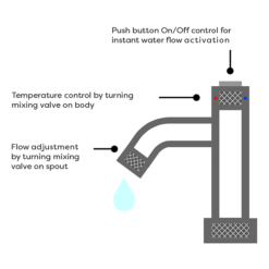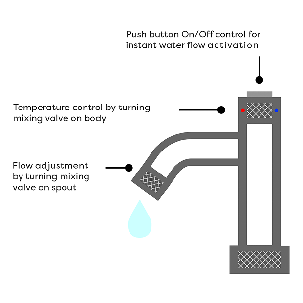 The stylish Arezzo industrial-style polished chrome 1 touch smart control mono basin mixer tap is perfect for adding a striking finishing touch to your contemporary bathroom. Features easy to use instant 1 touch start/stop water flow activation, ideal for when your hands are full or dirty. Temperature and flow is easily adjusted by simply turning the mixing valves located on the tap body. Crafted to the highest standards, this stunning deck mounted tap features a stripped-down aesthetic with a round knurled textured tap head controls, perfect for creating an eye catching industrial look in your bathroom. Plated in a polished chrome finish which is highly resistant to corrosion.