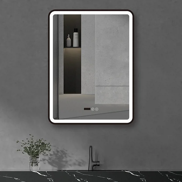 Arezzo 600 x 800mm Touch Control Illuminated Border Mirror – Dimmer, Demister, Colour Changing Light & Time Display – Matt Black