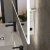 Bring modern design and contemporary good looks to your bathroom with this stunning battery operated universal (landscape or horizontal fitting) bathroom mirror with in-built lighting. This stylish mirror can be installed by anyone without the need of an electrician. Features two strips of light that run along the longer edges of the mirror providing direct bright light with an ON/OFF rocker switch hidden on the side.