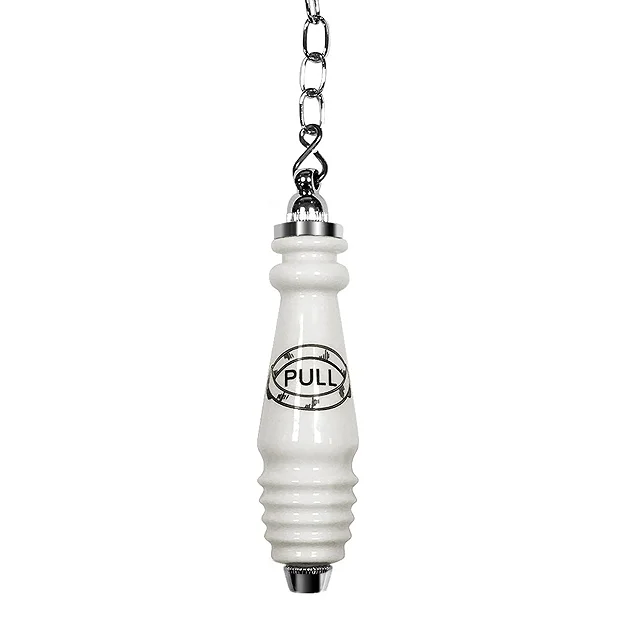 A quality Victorian style high level ceramic traditional antique cistern pull and Chrome Chain. Perfectly designed to complement your bathroom with ‘Pull’ motif on the ceramic handle.